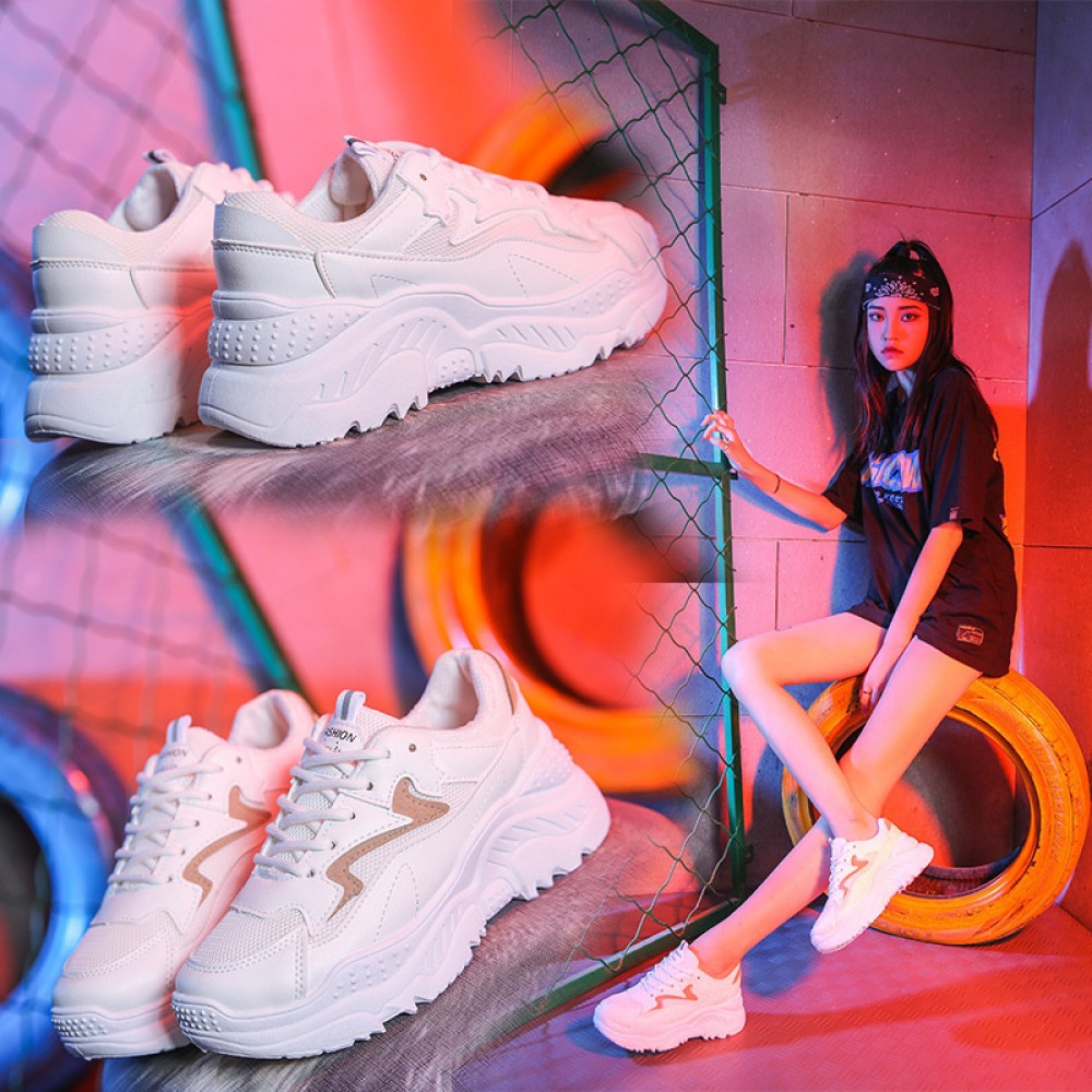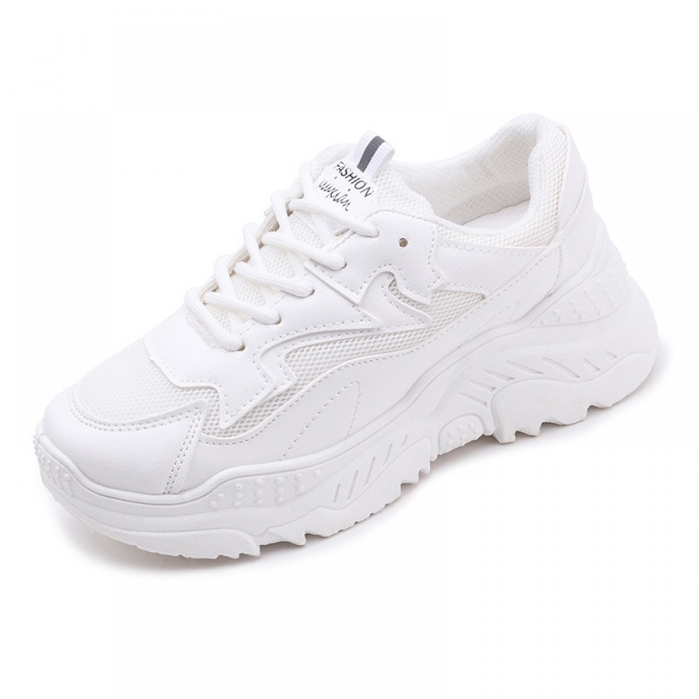 White Shoes Female Spring New Breathable Student Running Board Shoes Female Flat Lace-Up Shoes