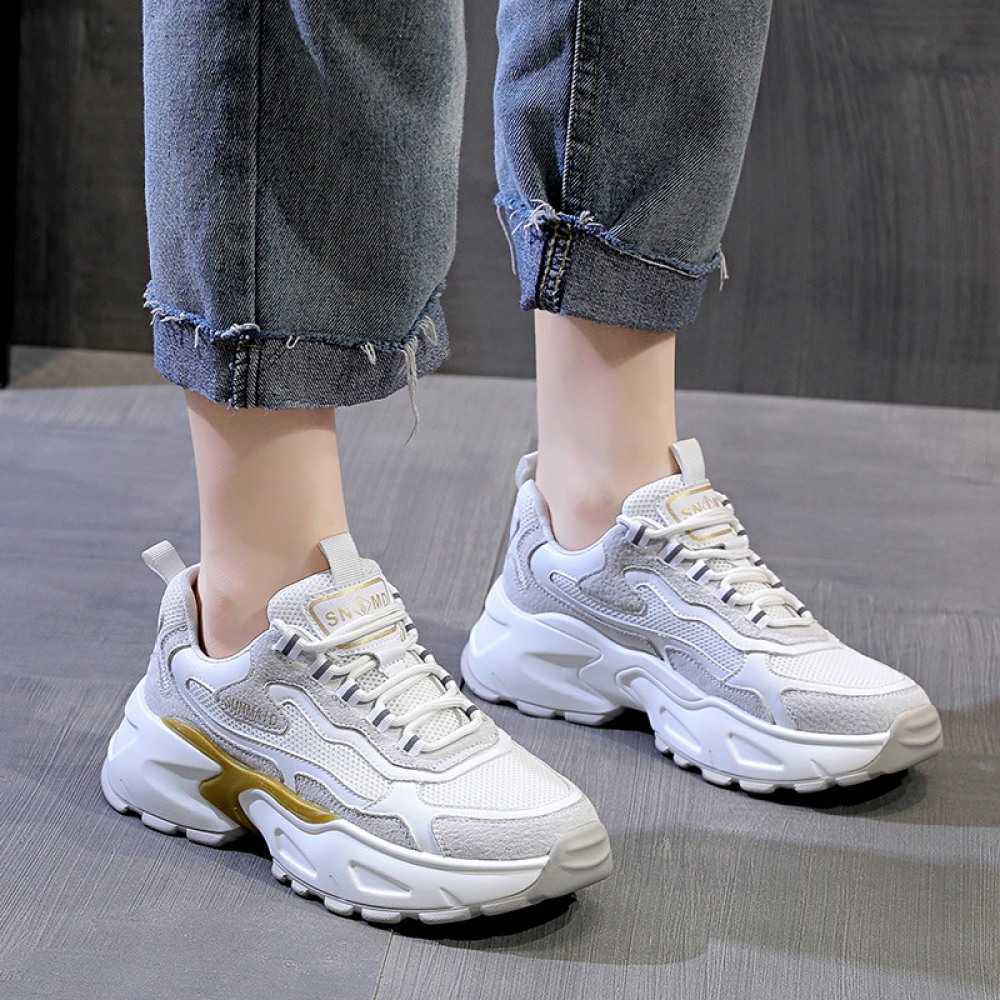 Spring New Trend Thick Bottom Mesh Breathable Soft Bottom Color Matching Sports Casual Women
