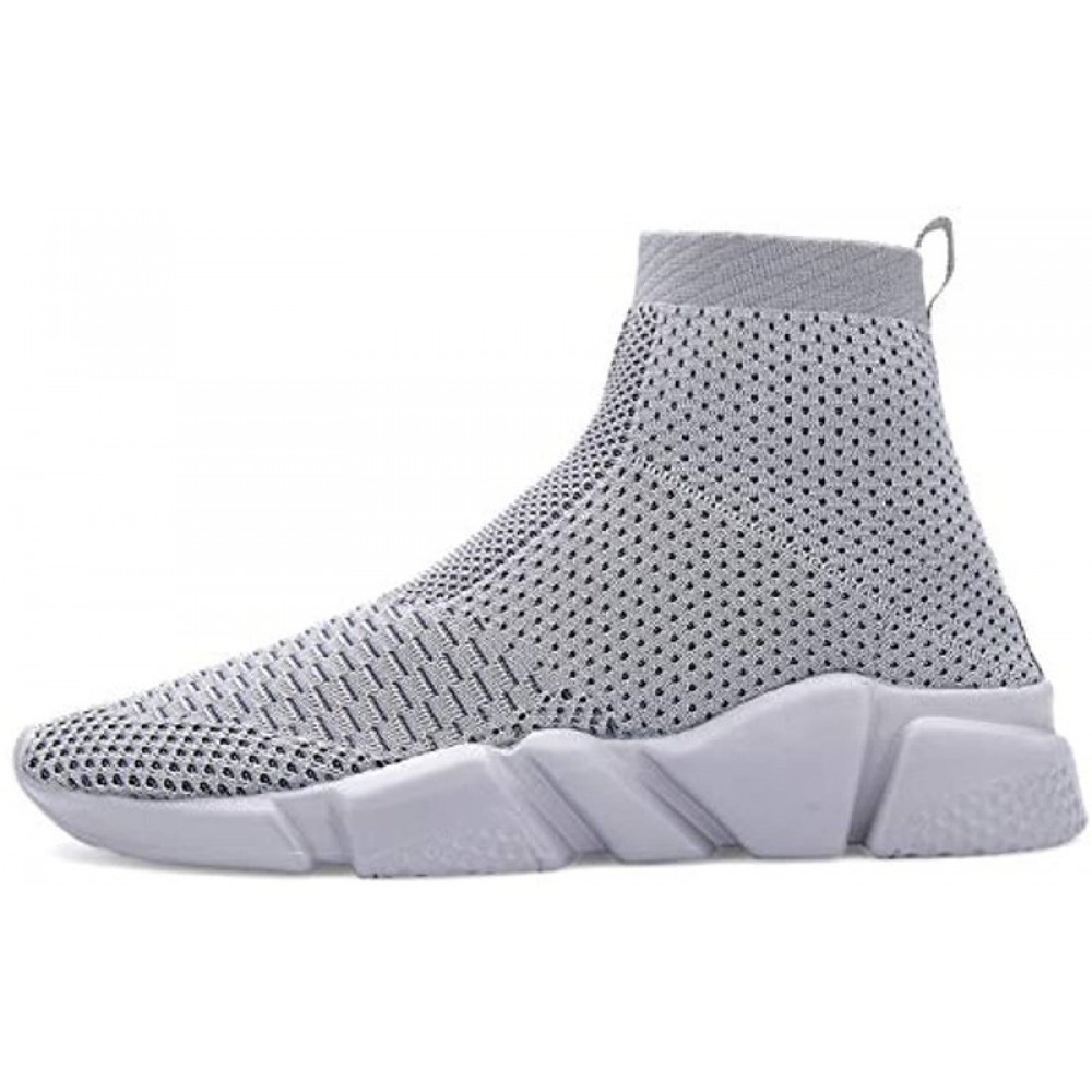Men's Running Shoes Breathable Knit Slip On Sneakers Lightweight Athletic Shoes Casual Sports Shoes High Top Grey