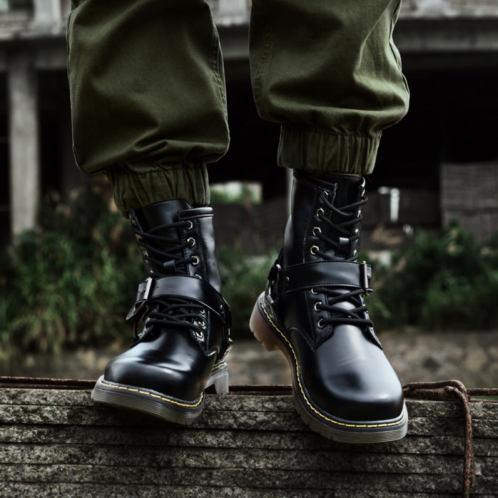 Martin Boots Men's Autumn New Leather Boots Casual Mid-Cut Tooling Boots High-Top Mens Shoes