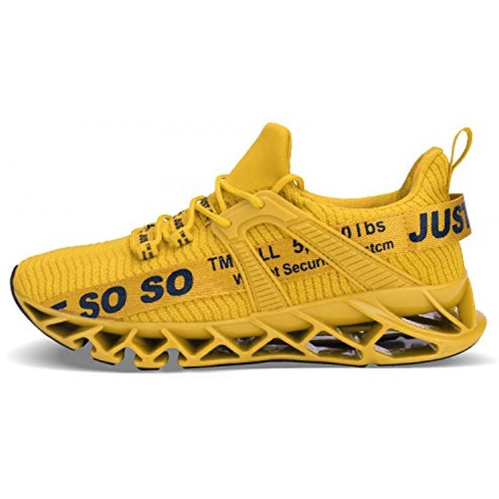 Mens Runing Shoes Walking Non Slip Blade Type Sneakers Yellow
