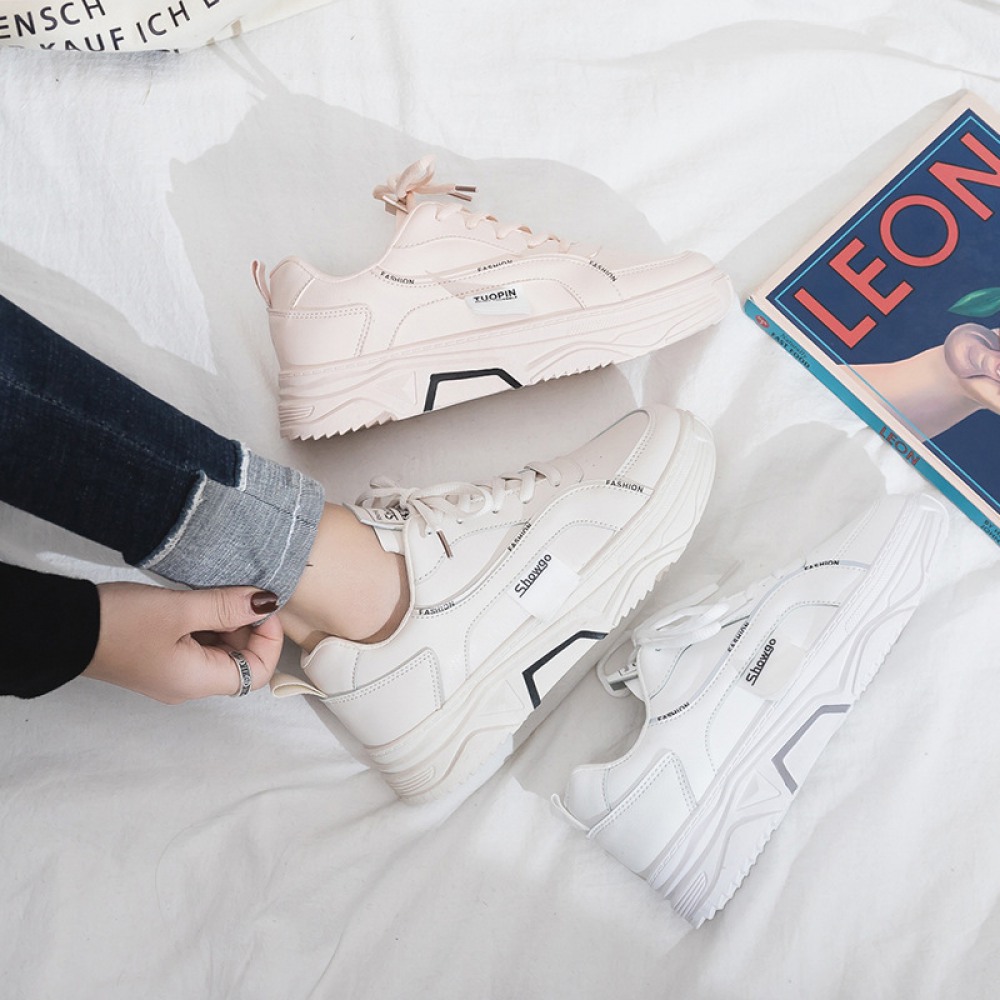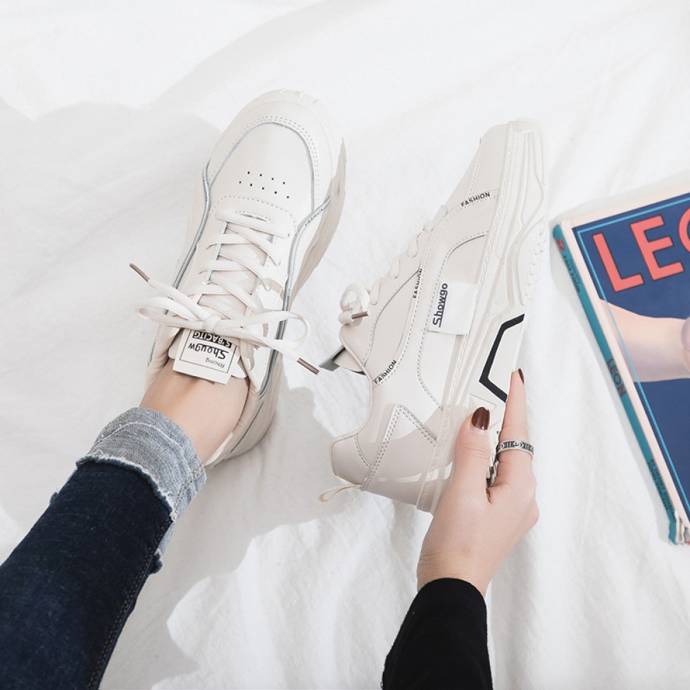 White Shoes Female Spring New Breathable Student Running Board Shoes Female Flat Lace-Up Shoes