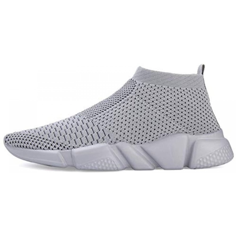 Men's Running Shoes Breathable Knit Slip On Sneakers Lightweight Athletic Shoes Casual Sports Shoes High Top Grey